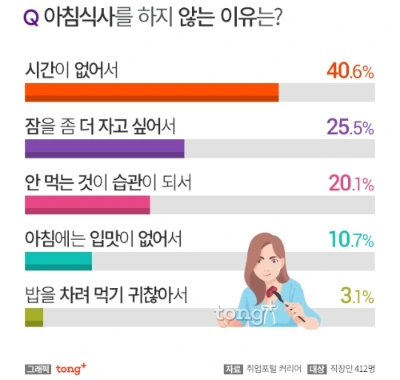 미혼남녀 직장인들은 아예 아침을 먹지 않는다고 한다.