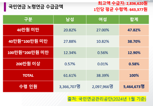 그러나 대부분의 사람들은 100만원 미만의 연금을 받는다.