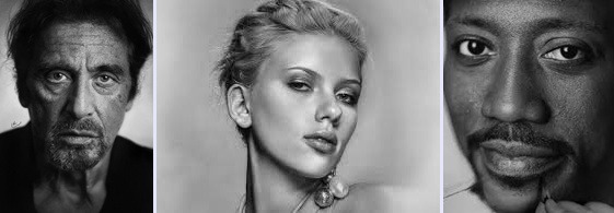 이 작품에서 모가담은 배우의 강렬한 표정과 얼굴의 복잡한 구조를 극도로 세밀하게 표현했다.