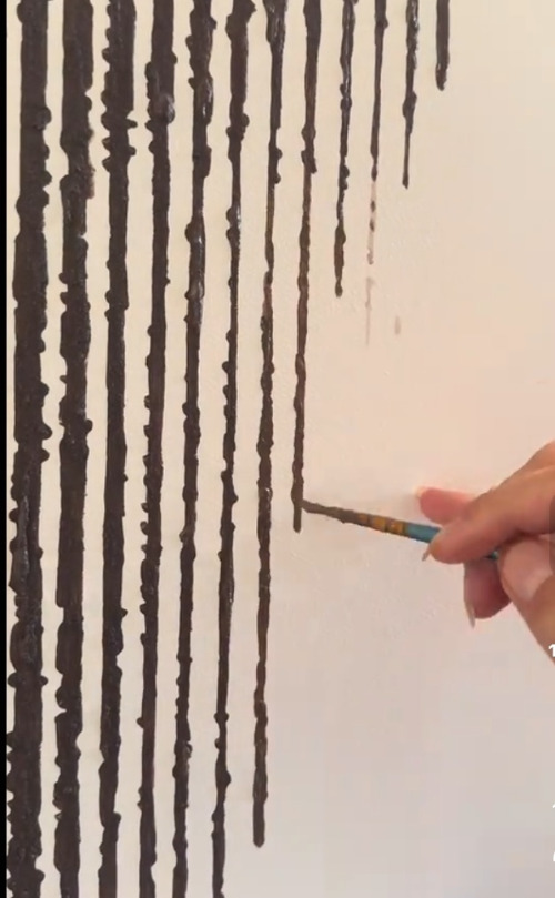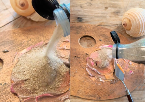 그녀는 물감에 모래 같은 입자를 섞어 질감을 만들고,