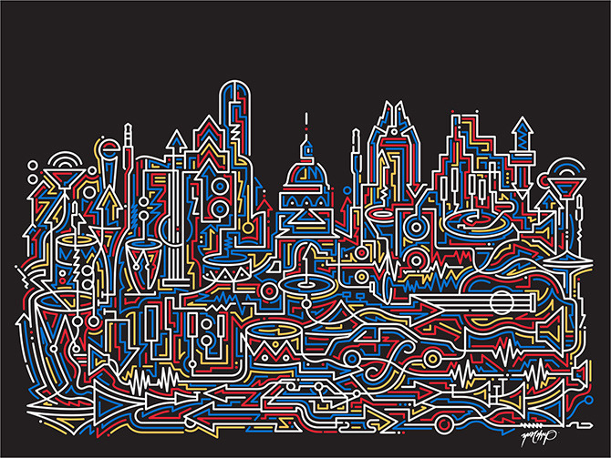 음악과 스케이트보딩으로부터 받은 감명을 선과 점 요소를 사용해