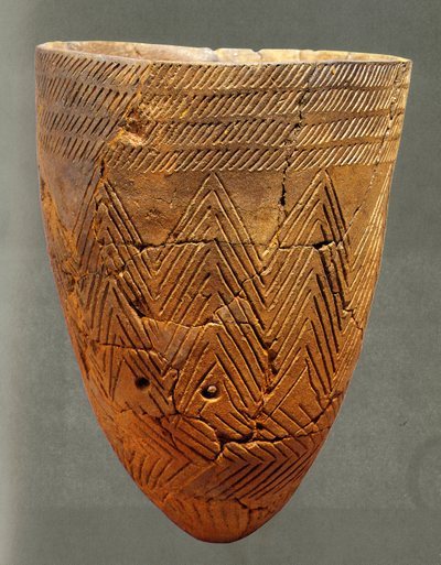 서울 암사동 5호 집터에서 출토된 빗살무늬토기는 신석기시대를 대표하는 완성도 높은 토기로,