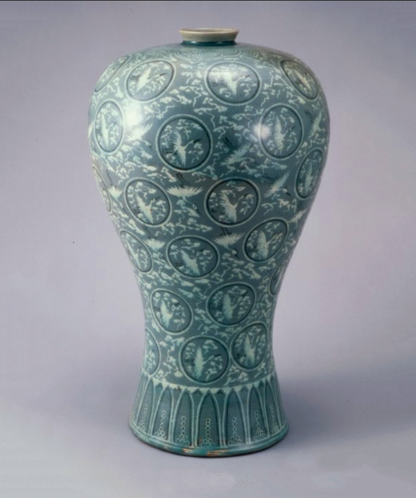 국보 제68호인 청자상감운학문매병은 고려청자의 정수를 보여준다.