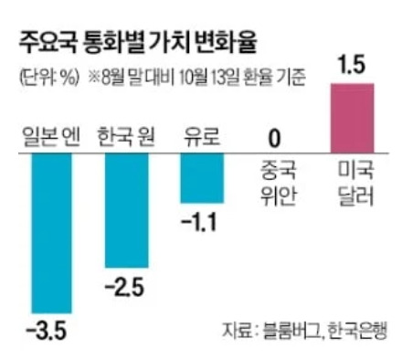 올해 들어 원화 가치는 3% 하락하여 아시아 주요국 중 가장 약한 통화로 평가받고 있다.