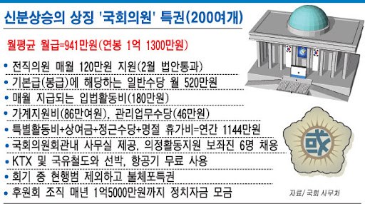 각종 특혜는 1억의 뇌물을 주고 당선되더라도 남는 장사이다.