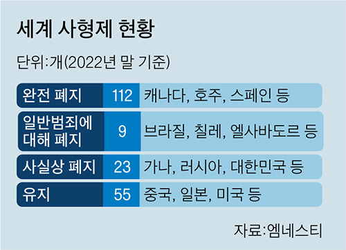 한국은 1997년 이후 27년간 사형을 집행하지 않아 실질적 사형폐지국으로 분류된다.