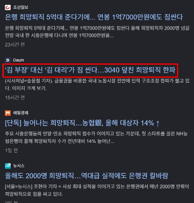 그런데 같은 시기 대기업들은 조용히 희망퇴직을 받고 있다.