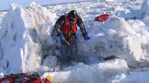 150마일의 얼음 지대를 가로질러 알래스카에서 시베리아로 도보로 횡단했다.