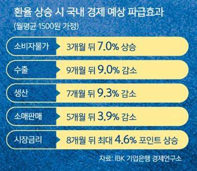실제로 환율이 1,400원대 초반인 지금도 생활 물가는 이미 5% 가까이 뛰었다.
