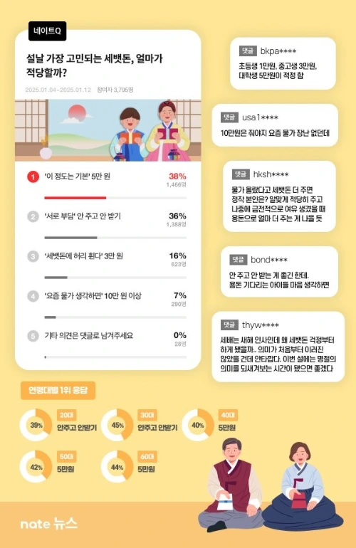 형편껏 할래도 세뱃돈 액수에 관심뿐인 조카들도 안보고 싶다. ㅠㅠ”(dep5****)