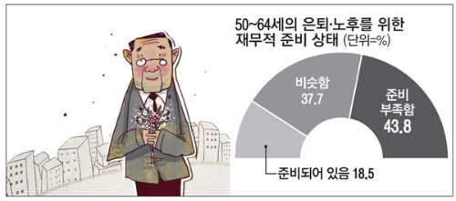 위로는 고령의 부모를, 아래로는 대학생 자녀를 부양하면서 자기 노후 준비까지 떠안고 있다.