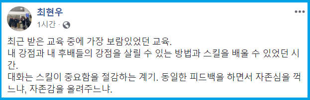 주로 기업의 CEO/임원/팀장님들과 교육담당 팀장님/담당자분들이 참석하셨고, 대다수가 입소문과 추천으로 오셨습니다. 좋은 분들이 오셔서 CBC가 더욱 빛났고, 밝고 긍정적인 에너지가 넘쳐 흘렀으며, 교학상장(敎學相長)의 시간이 되었습니다.