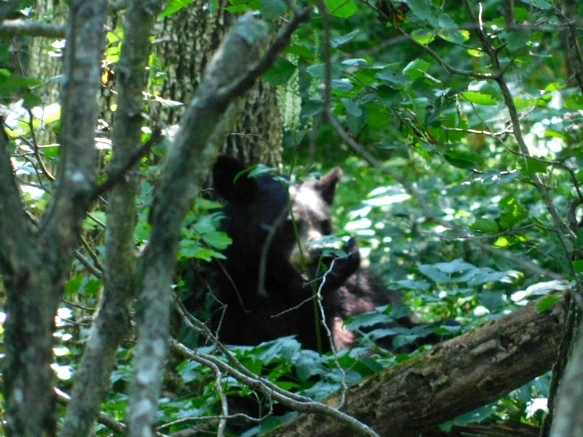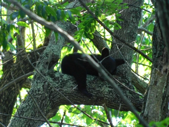 언덕 아래에서 열심히 숲 속을 관찰하는 나를 본 사람들이 모여들기에 나무 아래와 위에 곰이 있다고 알려주었다. 그들은 즉시 비상이 걸리고 숲 속의 곰을 찾으며 보이지 않는다고 하여 내 곁으로 조용히 내려오게 하고 숲 속을 가리키는데 아이들과 부모가 무서워하기에 검은 곰은 대체로 순하고 내게 무기가 있으니 유사시 언덕을 올라 차 안으로 들어가면 이후 내가 마지막에 알아서 해결한다며 안심시켰다.