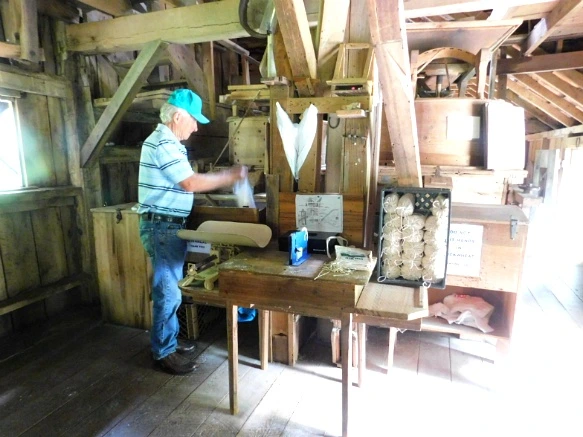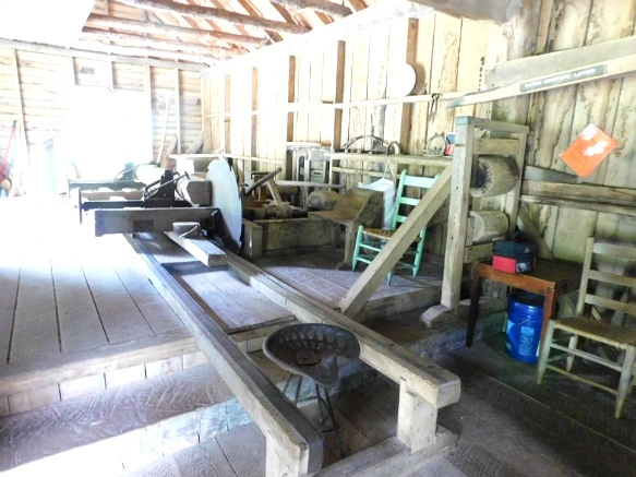 제재소와 곡식 방아가 함께 있는 방앗간 실내...