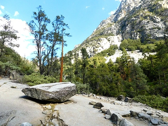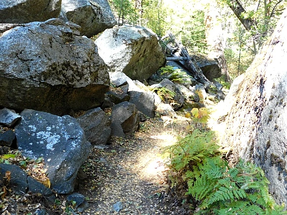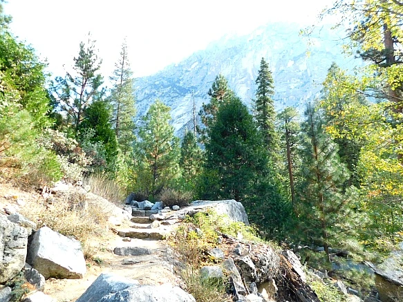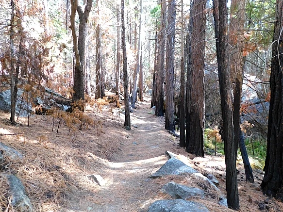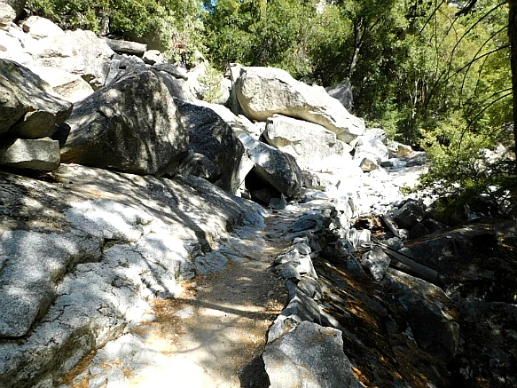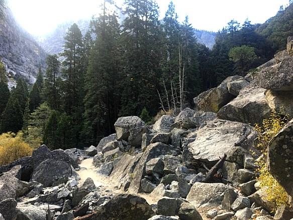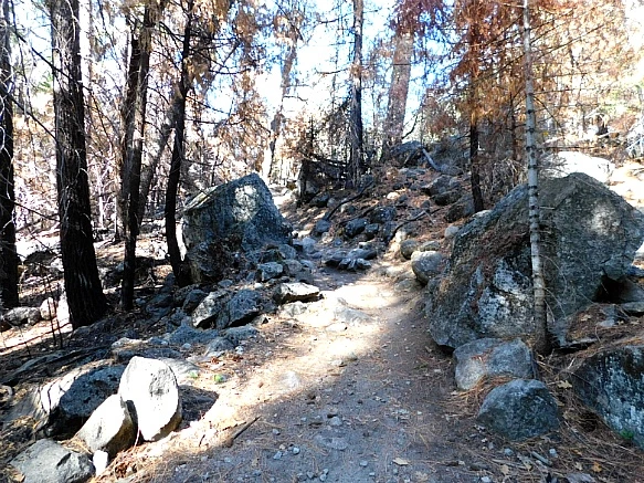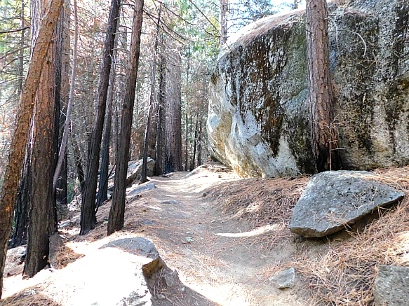 바위산과 바위산 가운데 생긴 계곡의 평지라서 험하지 않았으나 화강암이 부서지고 닮아서 쌓인 굵은 모래가 덮인 트레일은 걷기가 무척 불편하였다.