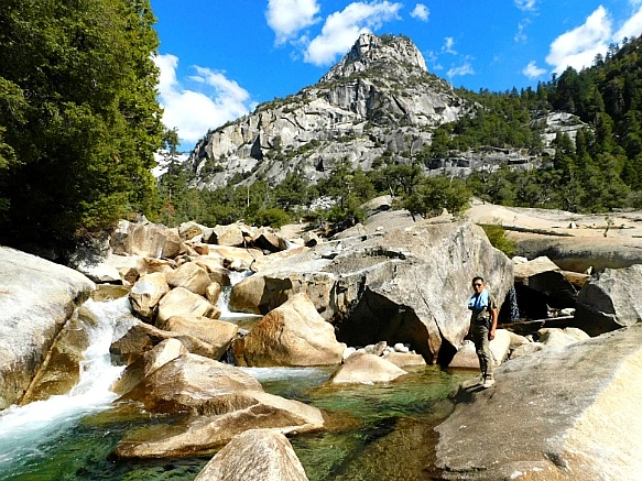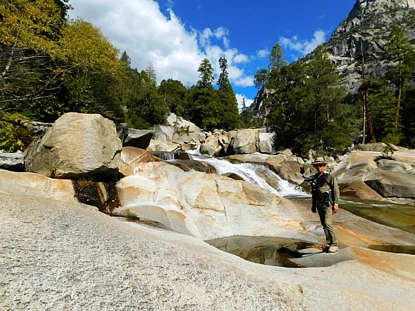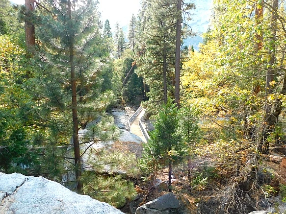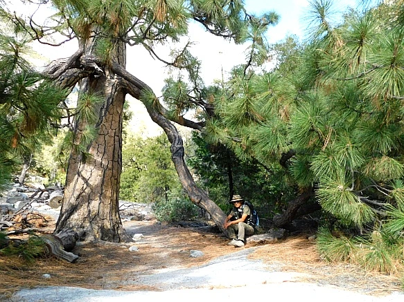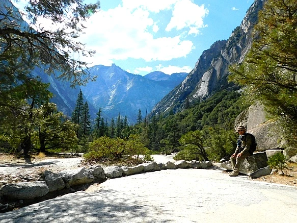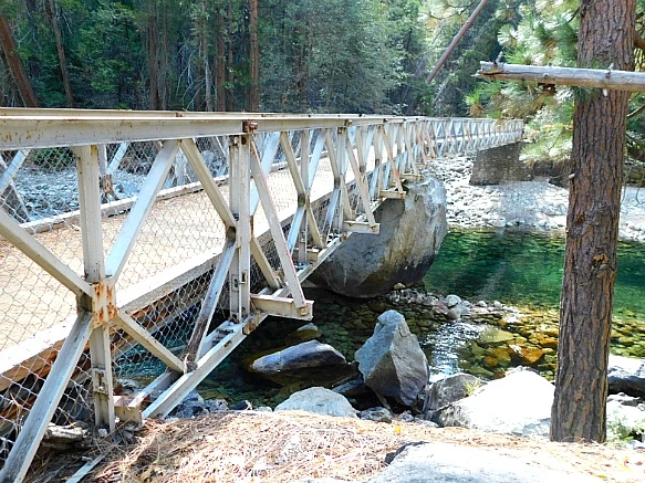 각자 커다란 배낭에 이불을 매달고 산에서 내려온 학생들과 지도교사가 다리에서 쉬고 있었는데 이곳 킹스 캐년은 당일 등반보다는 산에서 야영하는 등반객이 많은 곳으로 등반로가 대체로 길어서
