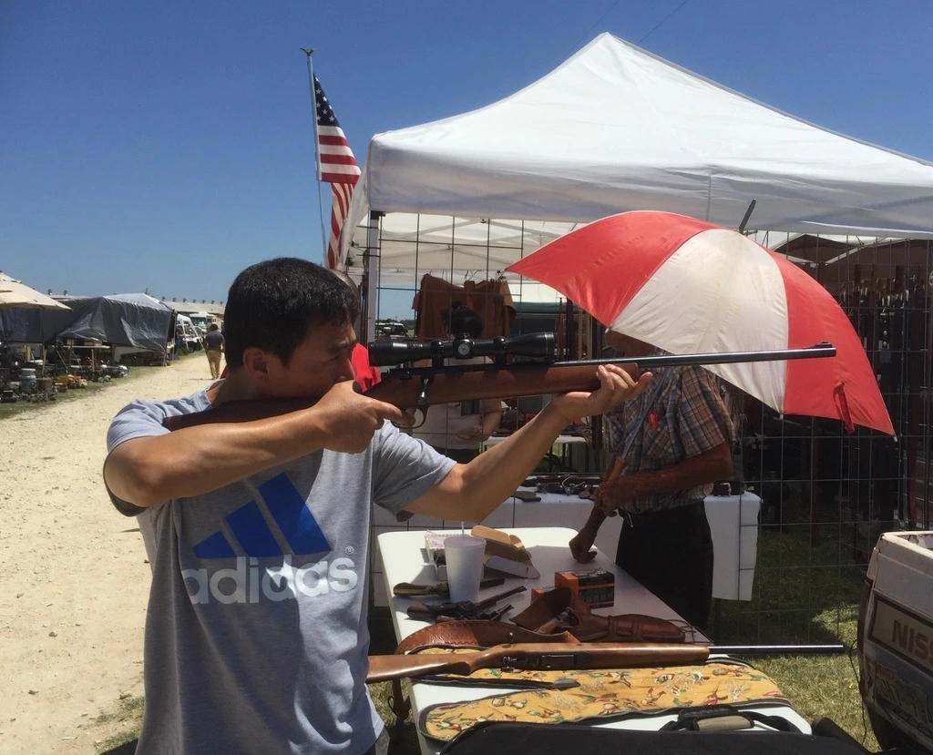 미국의 중서부 일대는 이렇게 구형과 신형의 실제 총을 시장에서 자유롭게 판매를 하는데 판매 후 벌어지는 사건에 대해서는 판매자는 책임이 없다. 어디서 나온 총인지 알 필요도 없고 테이블에 놓인 그대로 사든 지 말든지 알아서 하면 된다. 실탄은 총기 판매점 혹은 월마트에 가면 무진장으로 살 수 있고 가격도 무척 저렴하다.