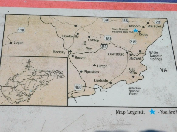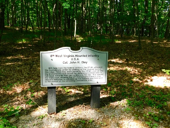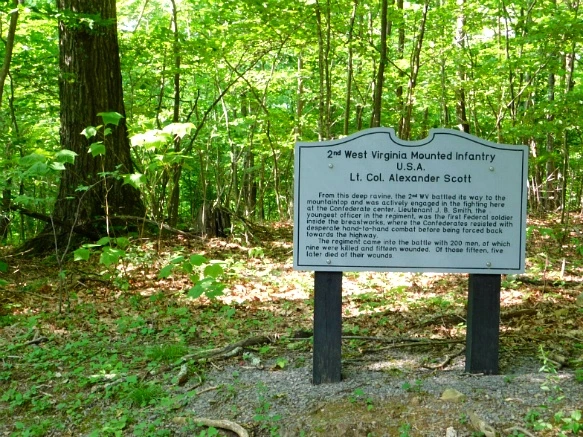 원래는 버지니아주였으나 전쟁 중에 북군의 편에 선 웨스트 버지니아 주민의 투표로 웨스트 버지니아로 독립한 이곳이며 당시 산악 보병부대 당시 대대장 알렉산더 스캇의 부대가 격전을 벌인 곳 표지다.