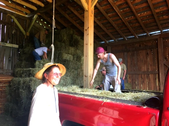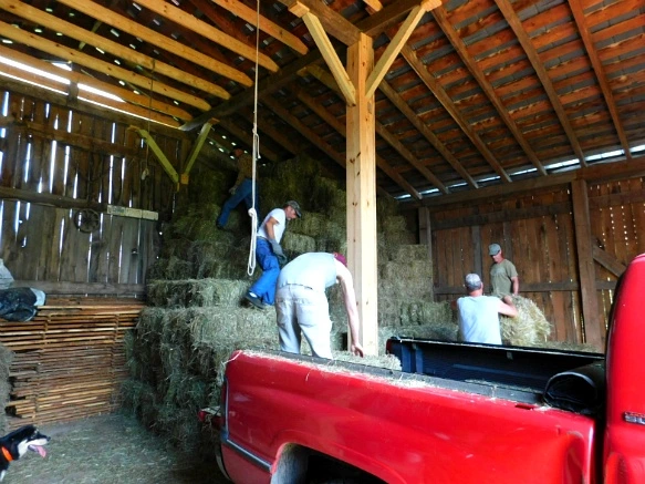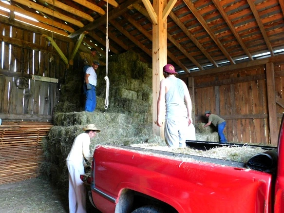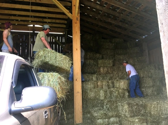 연이어 픽업트럭에 풀을 싣고 들어오고 창고 앞으로 집결하여 남자들은 풀을 내려서 쌓아 올리기 시작하였다.