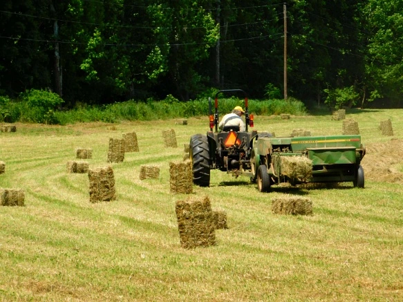 어느 개울가 다리 건너에 트랙터가 부지런히 움직이고 농부들이 모여 풀을 차에 올리고 있기에 다리를 건넜다.