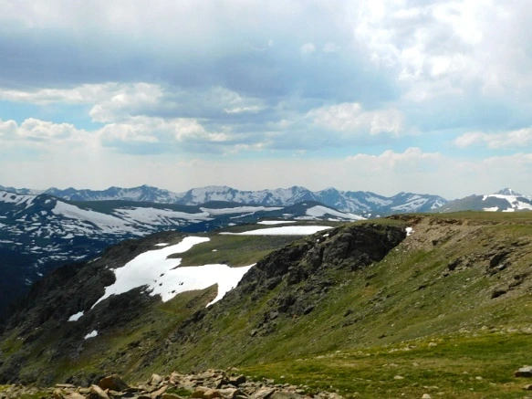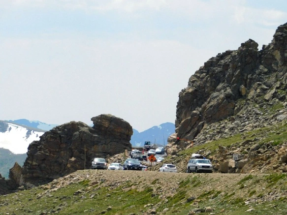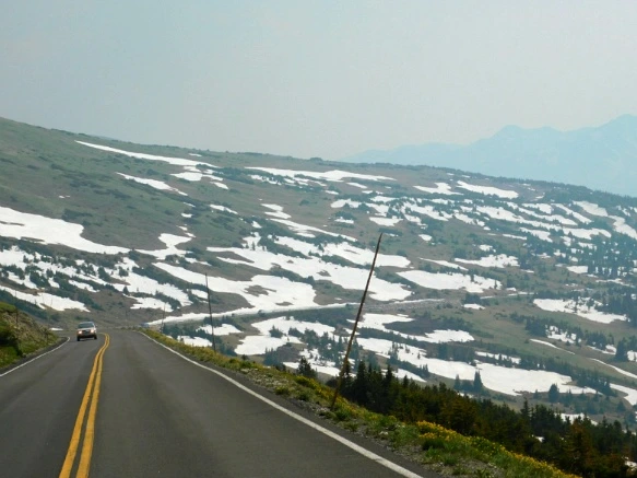 이곳 고갯마루는 록키산맥 도로에서 가장 높은 해발 3'710 M 인데 이곳에 오기 전부터 머리가 아프기에 고산증 증세로 직감하고 오늘은 서둘러 낮은 곳으로 내려가기로 했다. 몸이 시원치 않고 거동이 불편하니 두통에 만사가 귀찮았으며 허기까지 심하여 힘을 쓸 수 없었다.