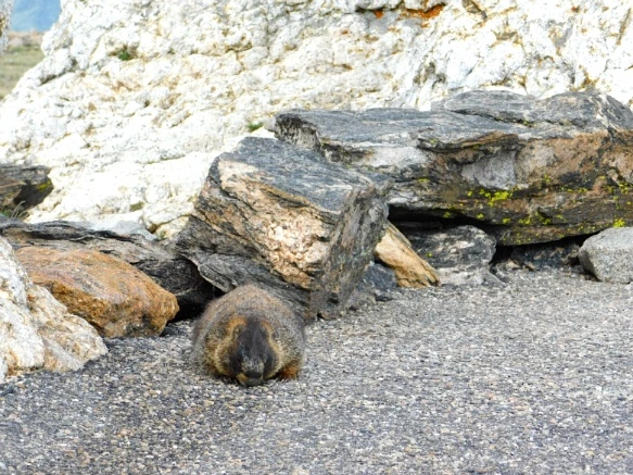 바위산 안에 여럿이 보여 있는데 오하이오주에서 온 가족 중 아이가 저녀석이 뭐하냐고 묻기에 바위와 아스팔트 바닥에 녹아내린 소금기를 핥아먹는 중이라고 설명을 해주었다. 야생동물이 가장 필요로 하는 것이 소금이며 사람이 야생동물을 길들일 때 소금을 주면서 길들이면 쉽게 친해진다.