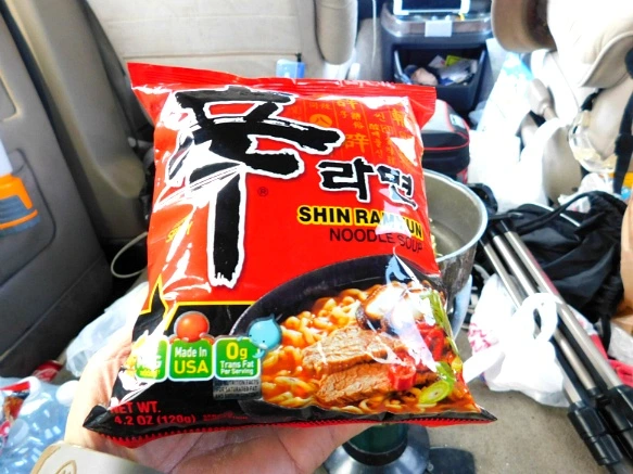 라면봉지가 이렇게 변해 있어서 이것이 혹시 상했나 생각해 봤으나 마른 식품이 그럴리 없어 원인을 파악하는데 평지에서 밀봉한 것이라 기압이 낮은 고지에 오르니 기압의 차이로 안에 있는 공기가 팽창한 현상이었고 밀봉이 매우 잘된 신라면이었다. 고산지대의 산소밀도가 낮은 곳이라 물은 평지처럼 잘 끓지 않으며 두배가량 시간이 걸린다.