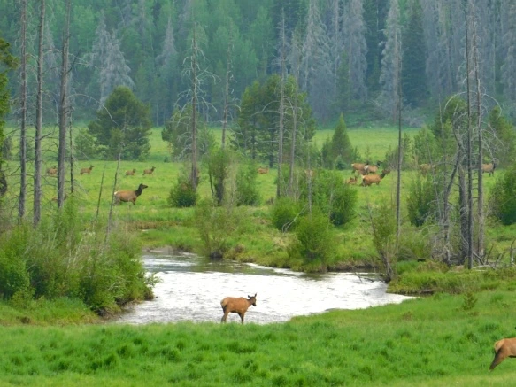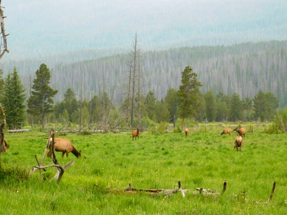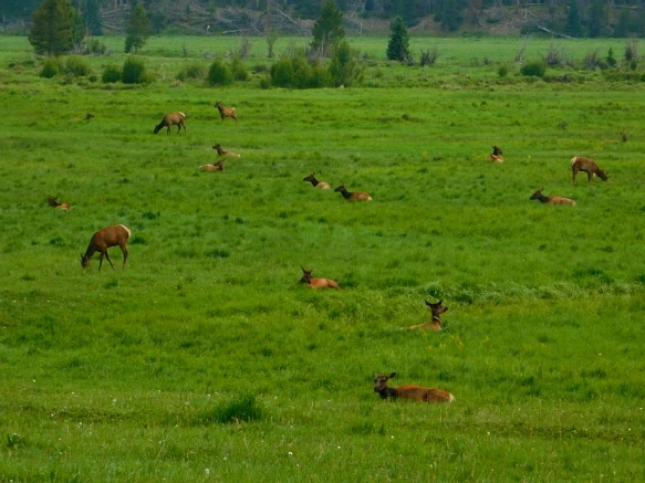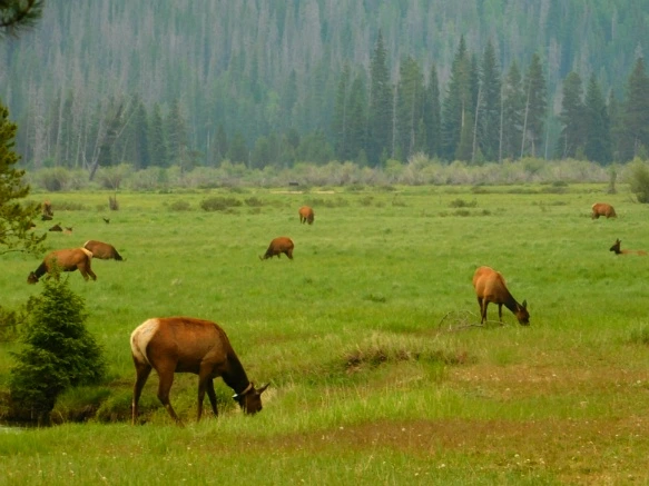 평지로 내려오면서 두통은 사라졌고 풀밭에는 큰사슴이 약 300 마리 떼지어 초원을 터전으로 삼았다,