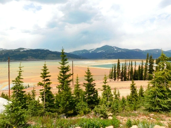 해발 삼천미터 가까운 곳에 인공호수가 있어 의아해 자세히 살피니 드럼통 굵기의 커다란 파이프 세걔를 통해서 광산에서 사용한 물이 이곳으로 수마일 운반되는 곳이고 사각형으로 만든 수영장 모습은 둑을 쌓아 폐수와 격리된 곳으로 둑을 통해서 정수되어 안으로 스며드는 물을 다시 시냇물로 보내는 그런 구조였는데 나의 추론이 맞을 듯하다.