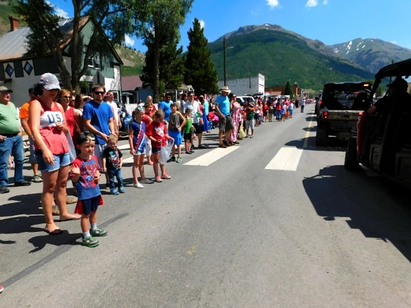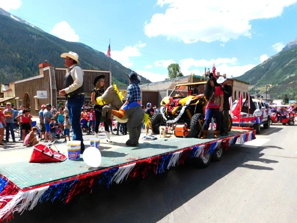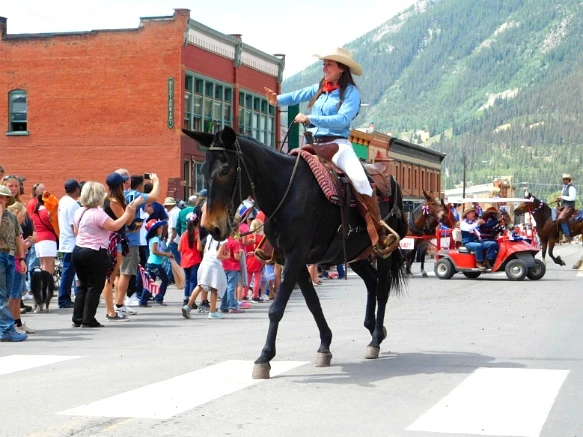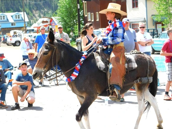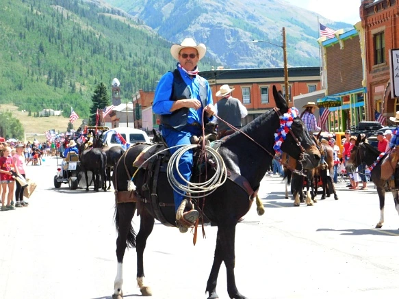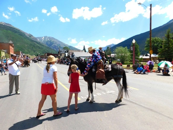 결찰과 소방차가 선두에 서고 뒤를 이어 각종 행렬이 따르는데 노새를 탄 카우보이 아이가 노새를 만져보고 싶어하는 아이를 불러 쓰다듬게 하였다.