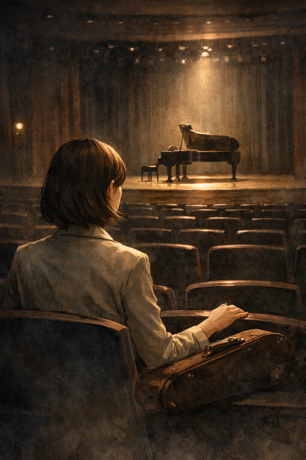 선우는 천천히 의자에 앉았다. 손을 무릎 위에 올렸다가, 건반 위에 가져다 두었다. 아주 짧은 침묵이 흘렀다.