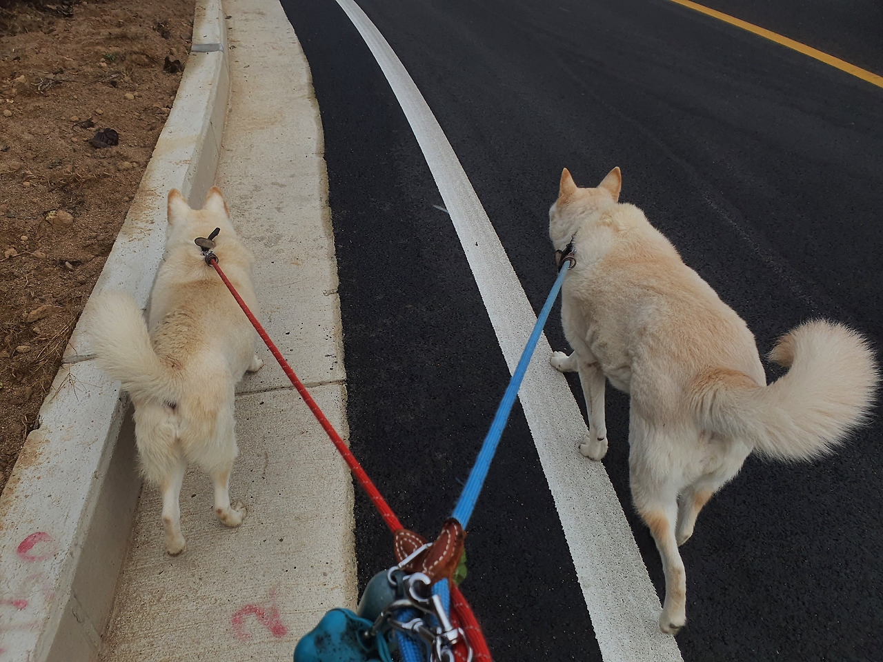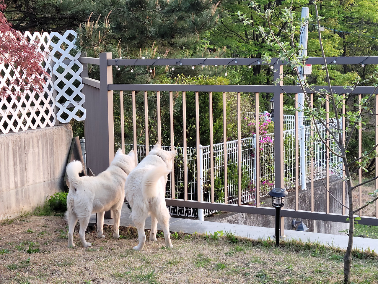 그렇게 새집으로 가서는 이제 애들이 적응을 해야 했다. 다행히 동네 끝집이라 지나다니는 사람들이 별로 없었다. 다만 산책로 끝 산으로 올라가는 길목이라 동네를 산책하는 분들이 산으로 가면서 집 옆을 지나가니 낮선이 가 지나갈 때 살구가 다시 짖기 시작했다. 옆집 아저씨가 친해지고 싶어 애들에게 인사를 해도 살구는 경계하며 짖기만 했다. 에구... 얘야~~ 나는 또 덜컹덜컹 가슴이 뛰었다.
