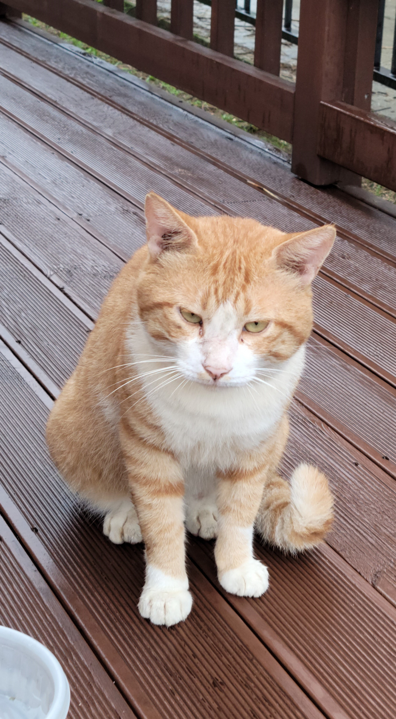그 후 '치즈 1호'는 데크에 올라오는 다른 냥이들을 물리치고(턱시도와 함께)이 중앙을 굳건히 사수했는데