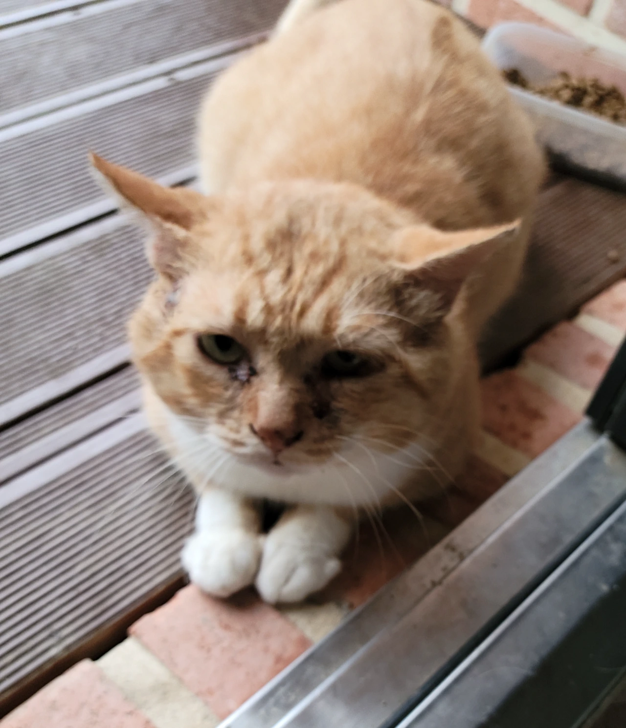 옆 볼에는 심한 상처가 났고 늘 딱정이가 붙어 있거나 딱정이가 떨어지면 피가 나곤 합니다. 오른쪽 발목 안쪽도 상처가 나 있습니다. 또한 왼쪽 눈은 실명을 한 것 같기도 하고... 눈동자가 선명하게 보이질 않습니다. 이 아인 내가 주는 모든 걸 받아먹으면서도 아직 손길은 허락하지 않아 만져 보지는 못했습니다. 소화기계에 문제가 있는지 사료는 먹으면 나중엔 다 토해 냅니다. 알갱이가 그대로 그냥 뱉어 내듯 말입니다. 그럼에도 사료를 먹습니다. 물론 추르나 통조림도 좋하해서 다른 애들 거 나눠주면 가서