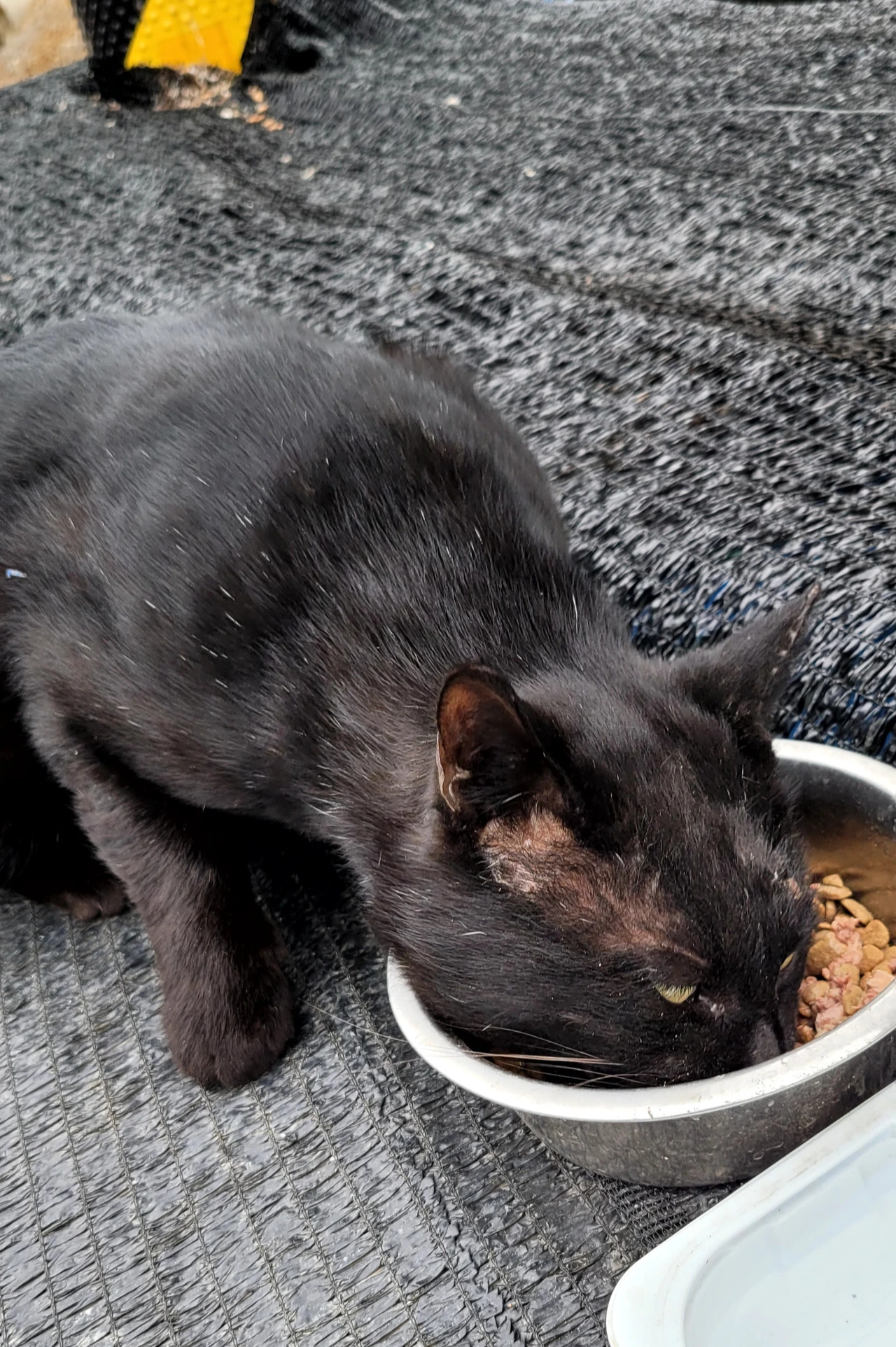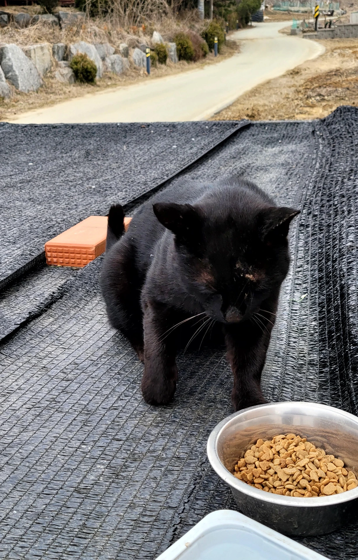 마음이 아픈데... 뭐 해줄 게 없습니다. 어째야 좋을까 고민만 합니다. 생각 같아선 붙잡아 다릴 상태를 보고 (뭐 내가 육안으로 봐서 알겠습니까 마는...) 병원에 데리고 가야 하나... 생각만 하며 그저 바라볼 수밖에 없어 안타까웠습니다. 할 수 있는 게 밥이라도 잘 먹이자 하는데 밥그릇에서 주저하길래 밥그릇에 급히 통조림을 넣어 주었습니다. 이거라도 먹고 기운을 내라.... 하면서요. 근데 얼굴에 상처는 왜 그리 많아졌는지... 어디서 싸우다 다친 건지... 지난가을 '치즈 2호'가 다리를 절며 나타났을 때는 몇 주 지나자 회복이 되어 다행이었는데 이 애도 회복이 되었으면 좋겠습니다. 그런데 이 애는 다리가 부은 게... 예전 치즈 2호 때와는 달라 보여 걱정입니다. 저렇게 다릴 못쓰니 먹이 활동을 어찌할까 싶습니다. 다른 애들한테 밀리고... 쫓기고 할 텐데 말입니다. 그나마 또 며칠 안 오니 걱정입니다. 와서 밥이라도 먹었으면 좋으련만...