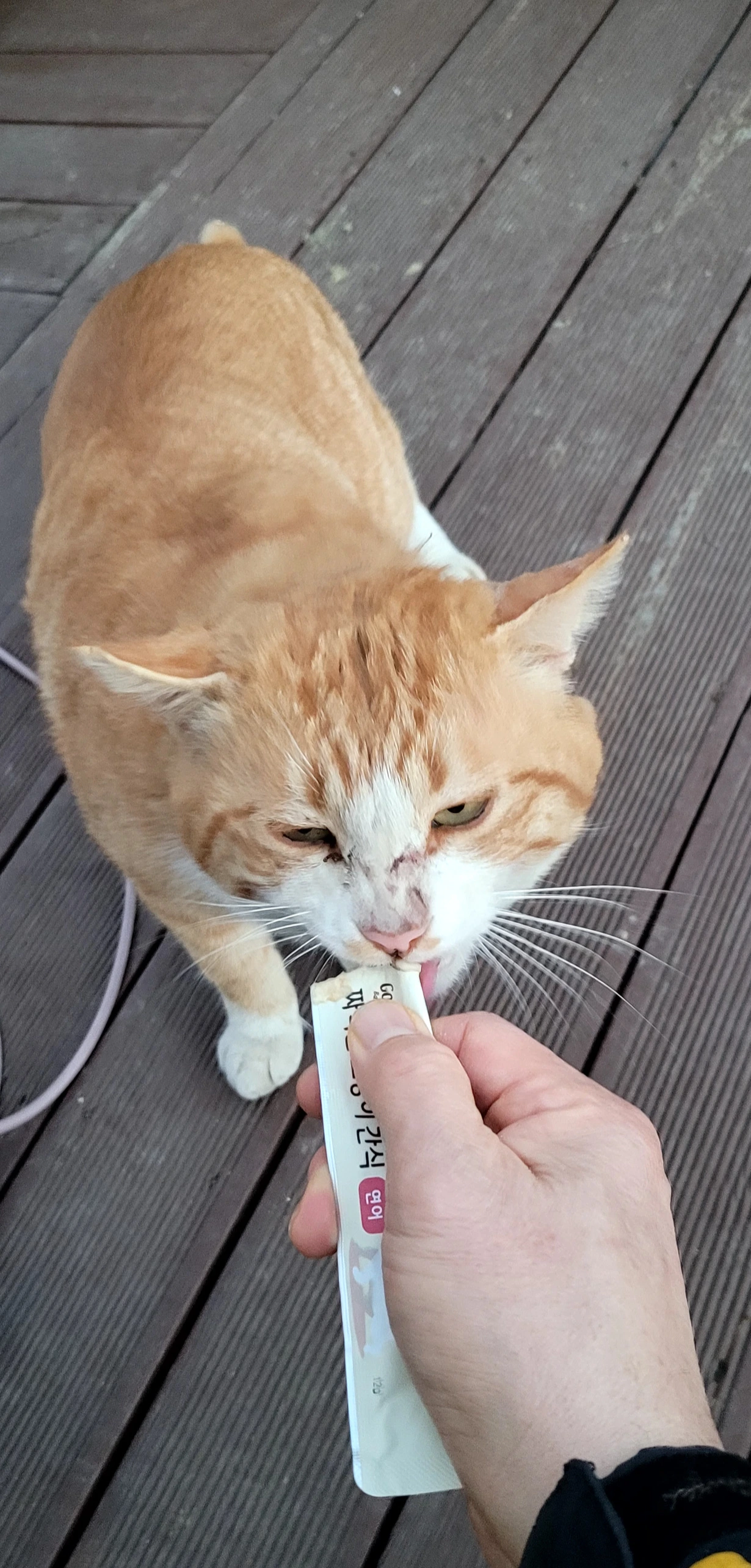자기가 있던 원래의 구역인 데크 오른쪽까지 왔길래 반가워서 일단 추르를 주었습니다.