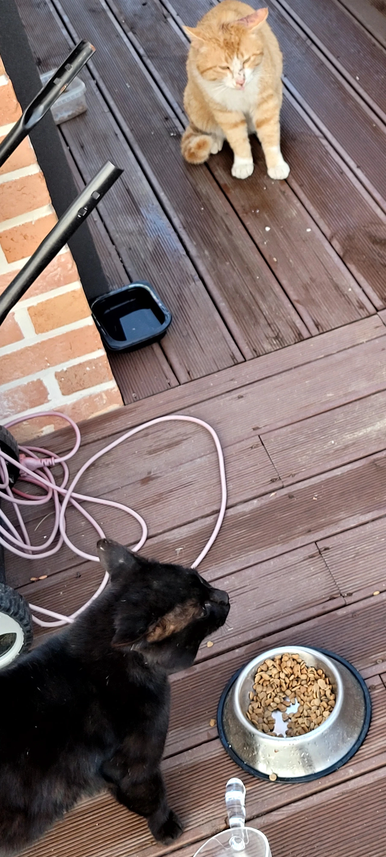 블랙이 2호: 다리 다처 절며 다니고 있고 자두네 지붕 위에서 주로 밥을 먹다 요즘 데크 위로도 오기시작