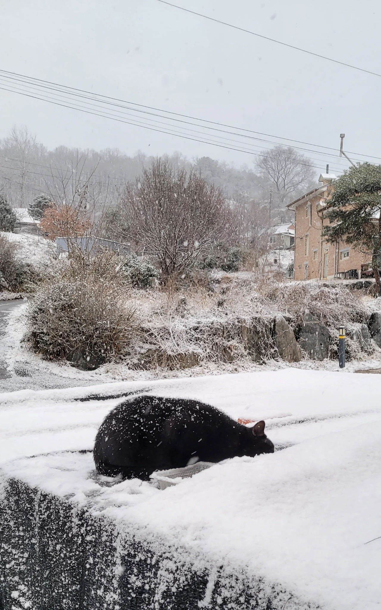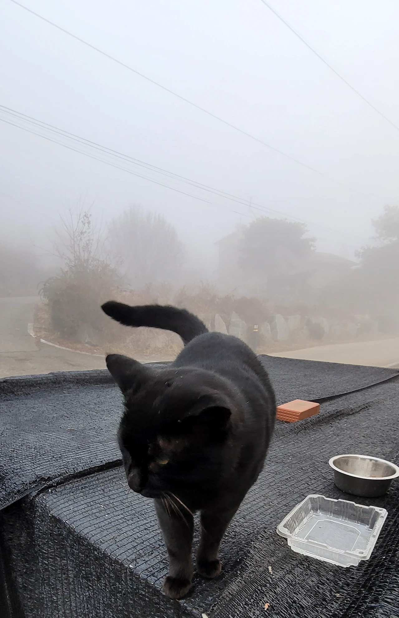밥을 챙겨주었는데 이 아이는 내게 자신의 존재를 알리려 내가 나오면 아주 간드러진 소리로 냐옹거리며 지붕 위에서 나를 불러댔습니다.