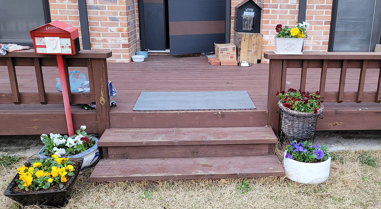 그런데 사진을 찍고 보니 계단에 물청소도 한 번 하고 위에 너저분한 것들이라도 치우고 찍을걸 그랬나 하는 생각이 든다.... 어쩔 수 없다. 게으른 자는...