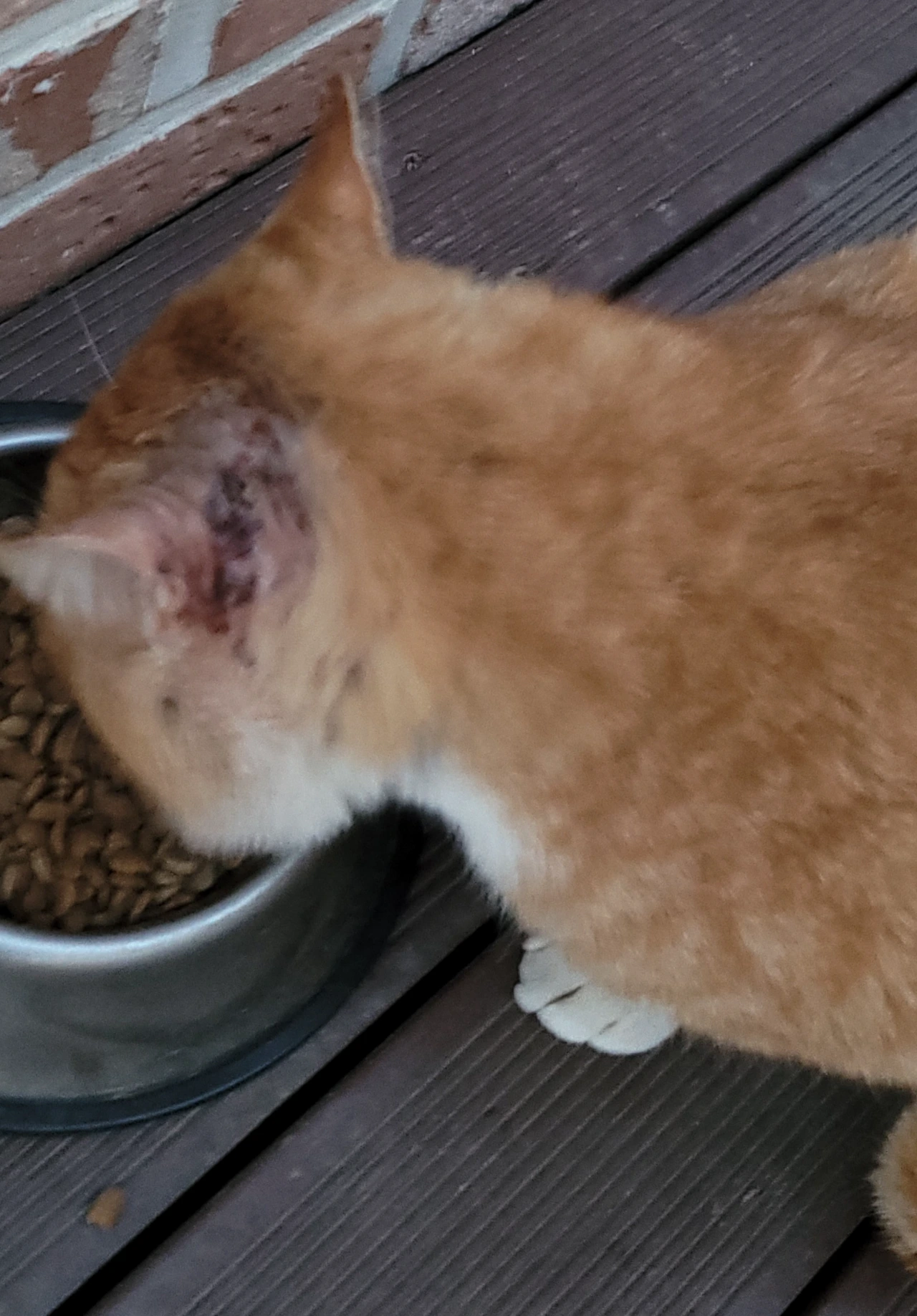꼬박꼬박 옵니다. 그러면서 귀뒤의 상처는 다 나았는데 이번엔 앞다리를 다쳐서 딛지 못하고 들고 다닙니다.