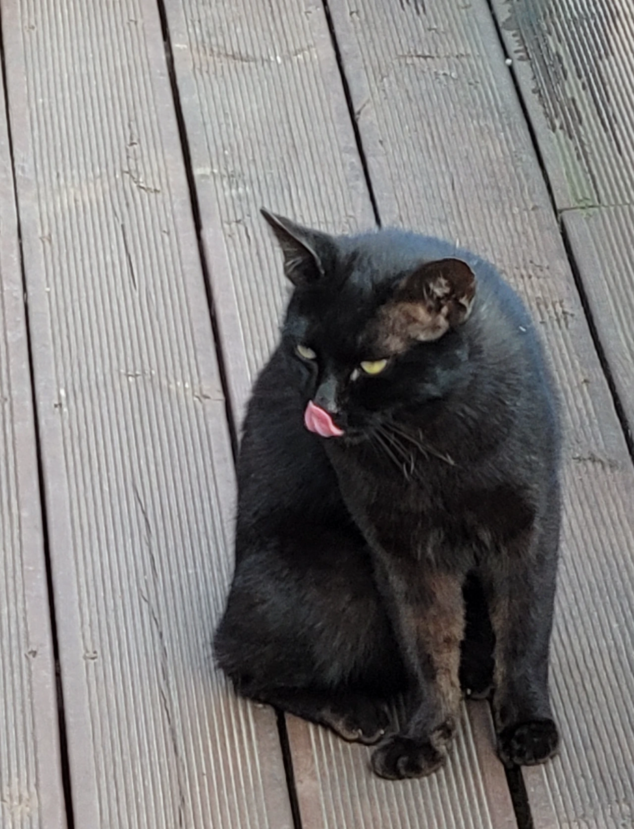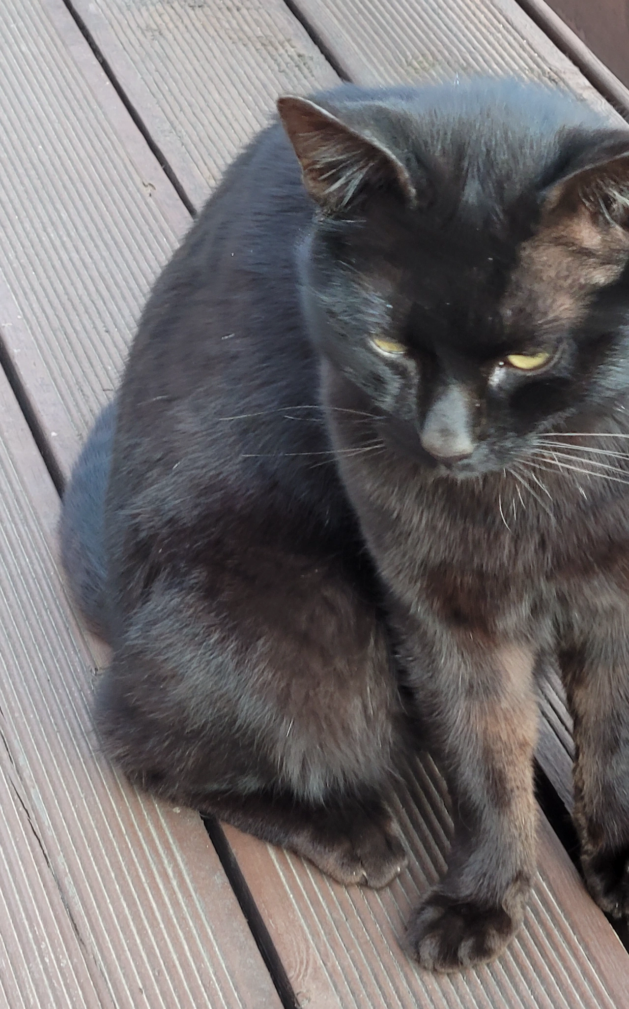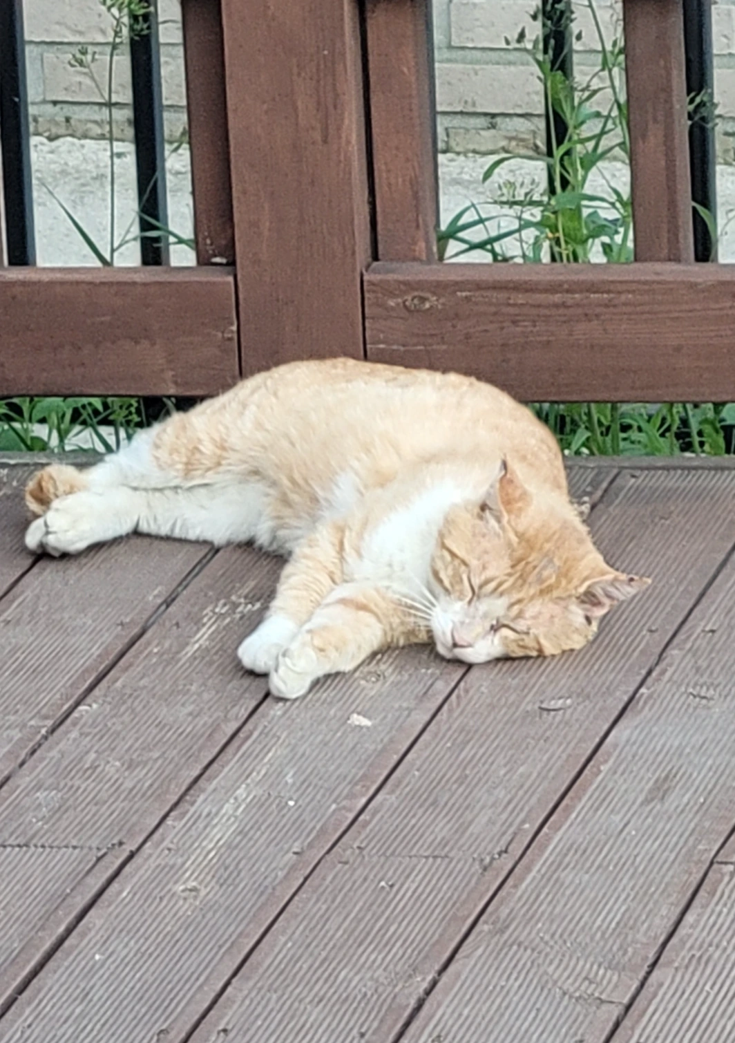 오는 애들을 쫓아내며 데크 중앙을 차지하고 살았는데 요즘도 오면 대장 노릇을 합니다. 다른 애들이 오는 걸