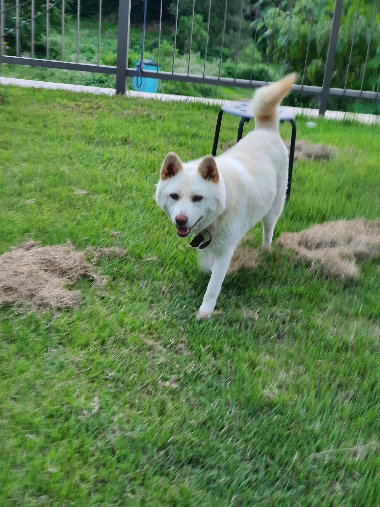 두 녀석 다 잔디를 파헤치거나 하는 일은 없어 잔디가 훼손되는 일은 없어 다행이었으나 신기하게 잔디가 없는 흙이 있는 곳은 꼭 땅을 팠다. 그늘아래 잔디가 없는 곳은 늘 그랬다. 그렇게 나무 밑이나 계단 옆 그늘 같은 곳은 자두의 쉼터가 되었다. 잔디는 한여름엔 2주 정도만 지나도 무성해지고 심지어 돌아서면 자라나는 것 같았다. 인터넷에서 싸구려 예초기를 사서 마당을 관리했으나 요령 부족에 질 낮은 중국산 싸구려 예초기는 이 마당을 관리하기엔 역부족이었다. 나름 관리한다고 했지만 제대로 관리가 안 돼 잡초가 무성해지고 부지런하지 못한 나는 점점 방치하다 보니 전체적으로 마당이 엉망이 되었다. 개들이 파헤쳐져서가 아니라 관리를 안 해서 일단 잡초들이 잔디를 침범했고 한번 침범한 토끼풀은 무섭게 번져 잔디를 없앴다. 정말 마당이 넓은 집은 이 잔디 관리를 어찌하나 싶은 게 따로 돈을 들여서 사람을 사서 해야 하나 싶다. 이 130여 평의 마당인데도 말이다. 그렇게 한 해를 보내고 두 번째 여름을 보낼 무렵엔 정말 잔디가 거의 반쯤 훼손이 되었다.