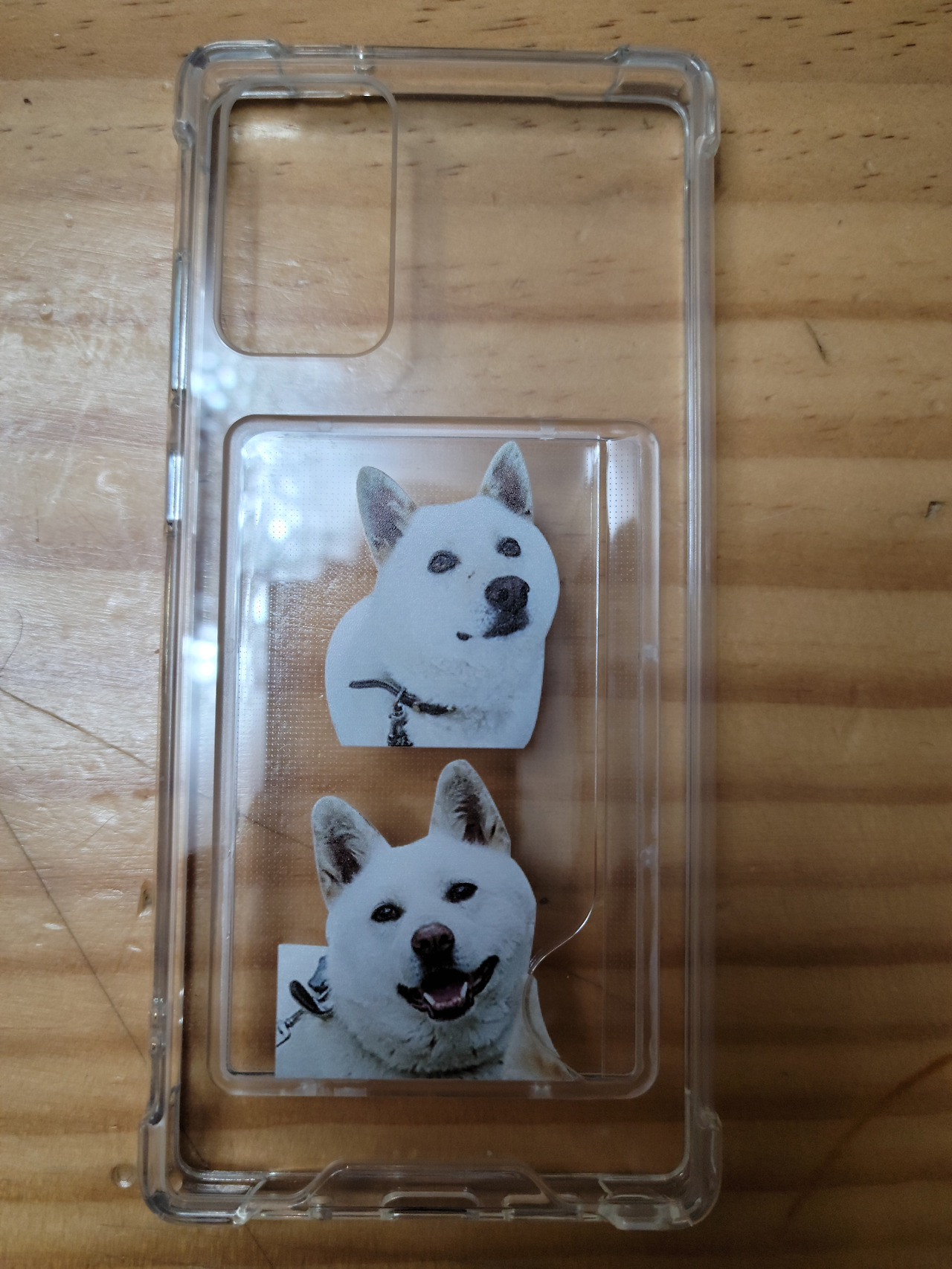 애들을 위한 기념을 남기고 싶어 애들이 이쁘고 건강한 시절 서너 살 때쯤? 사진으로 핸드폰 케이스를 만들었다. 그리고 이게 살구에겐 내게 남은 유품이 되었다. 이 사진에서 애들은 뽀얀 백구 시절인데 애들이 나이를 들어 갈수록 황구처럼 변해 갔다.