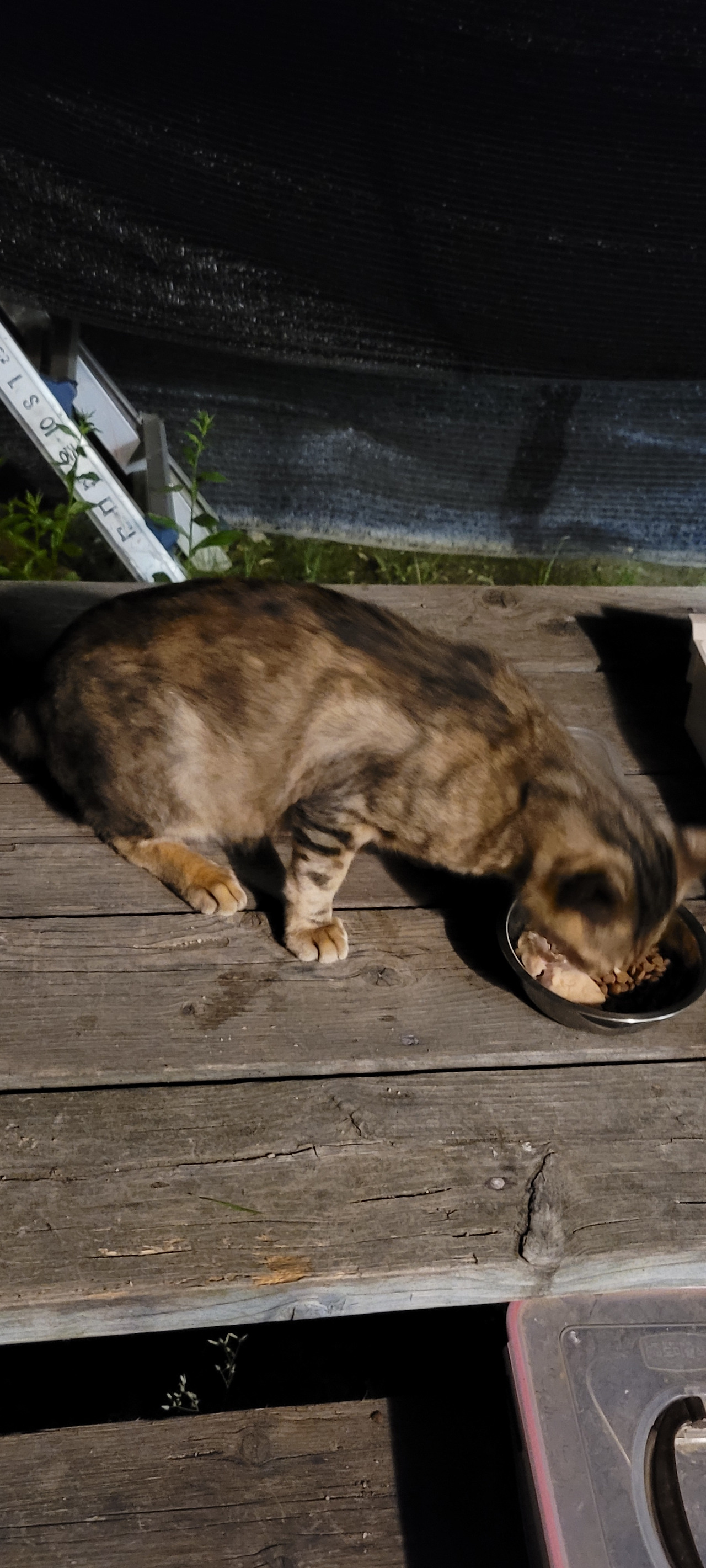 일단 츄르를 주고 닭고기도 주었더니 허겁지겁 막 먹습니다. 세상에... 3개월간 보이지 않아 나쁜 상상을 했던 내가 무색하게 다시 나타나 '자두'와 애정 행각(?)을 벌이고 있는 '호피'가 너무나 대견하고 반갑고 정말 집 나간 아들이 다시 들어온 기분이었습니다. 일단 '자두'는 아주 좋아 죽습니다(예전에도 호피만 보면 좋아 죽는 자두) 외출에서 돌아오니 '호피'는 계속 있던 건지 나갔다 다시 온 건지 역시 '자두' 우리에 있습니다. 다시 밥과 간식을 주고 쓰다듬다 몸 상태를 보니 선명한 호피 무늬가 좀 옅어진 것? 같은 느낌과 좀 마른 것처럼 보이는 것 외엔 괜찮아 보입니다. 다만 왼쪽 귀 뒤에 상처가 나 딱지가 덮기 전 피부로 드러나 있었습니다.