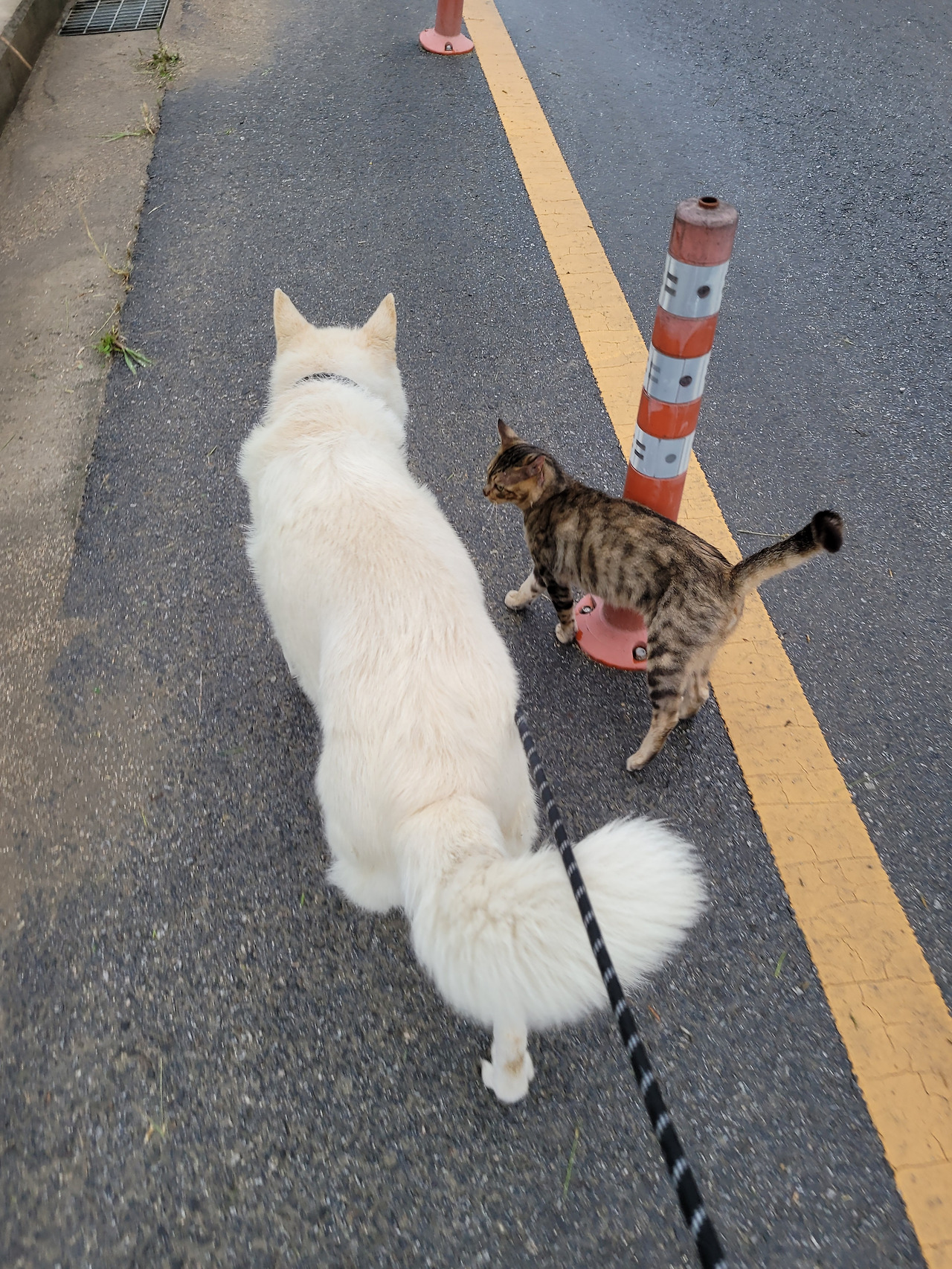 스타가 된 아이고 '호피'가 안 왔을 때 '자두'만 데리고 산책을 나가면 어디 있다 나타났는지 쓕~하고 산책길에 나타나기도 하는 등 나와 '자두'를 아주 잘 따르는 아이입니다. 이 아이도 '턱시도'처럼 손길도 허락하는