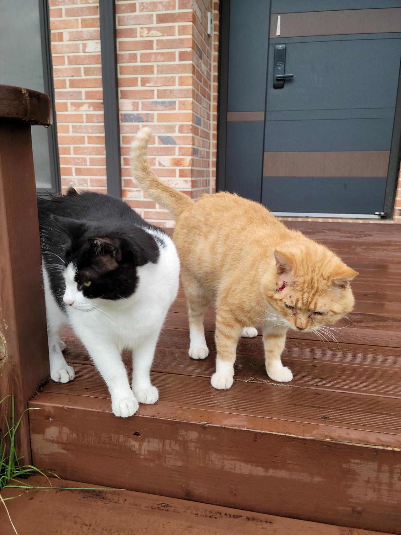 우리 집에 오는 애들 중 이 두 애들, 턱시도와 치즈 1호는 집 중앙 현관을 장악하고 거기서 살다시피