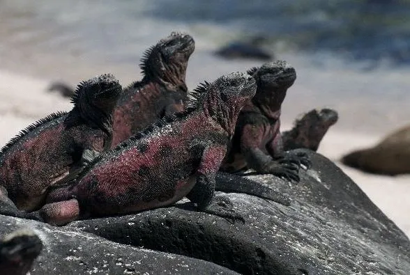 바다 이구아나들이 수백 마리가 떼로 해안가에 있는 걸 보면 소름이 끼치기도 하는데 그 크기가 악어 새끼