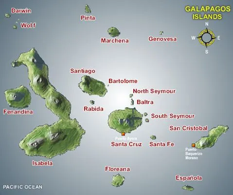 이 갈라파고스 제도는 에쿠아도르 영토로 약 1,000km 떨어진 곳에 19개의 화산섬과 많은 암초로 이루어진 군도이며 고유한 생태종이 많이 있는 생태계의 보고로 이곳에서만 서식하는 동식물들이 있다. 땅거북, 핀치새, 바다이구아나 같은 고유종 동물들이 그것이다. 이곳이 이렇게 특이하게 진화된 동물들이 있게 된 건 육지와 멀리 떨어져 육지 동물과 교배 없이 그 안에서만 진화가 이루어져 육지와는 다른 생태계가 만들어진 것이다. 심지어 군도에 여러 섬마다 같은 종류의 새가 그 섬에서만 진화가 이루어져 같은 새들 간에도 차이가 생겼다고 한다. 그래서 이 제도 전체가 유네스코 세계유산으로 지정되어 이 고유한 종을 보호하기 위해 노력하고 있다. 동물학, 식물학, 진화론 연구에서 중요한 곳이라 하고 실제 다윈은 이곳에서 진화론을 연구한 것으로