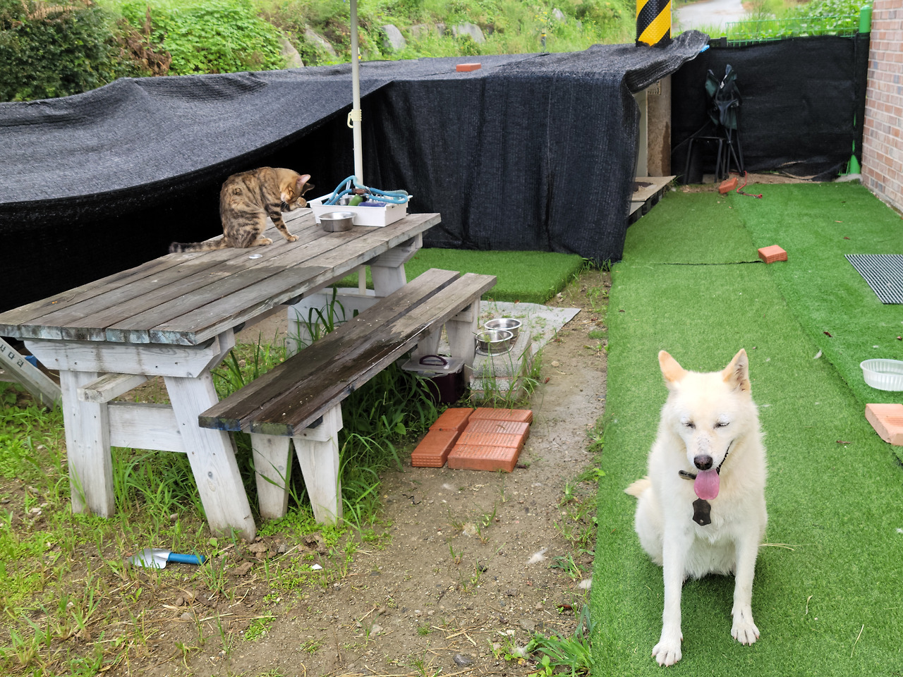 신기합니다. 고양이들은 어디 있었는지 내가 오는 시간엔 문 앞에서 기다리거나 슬금슬금 담을 넘어오거나