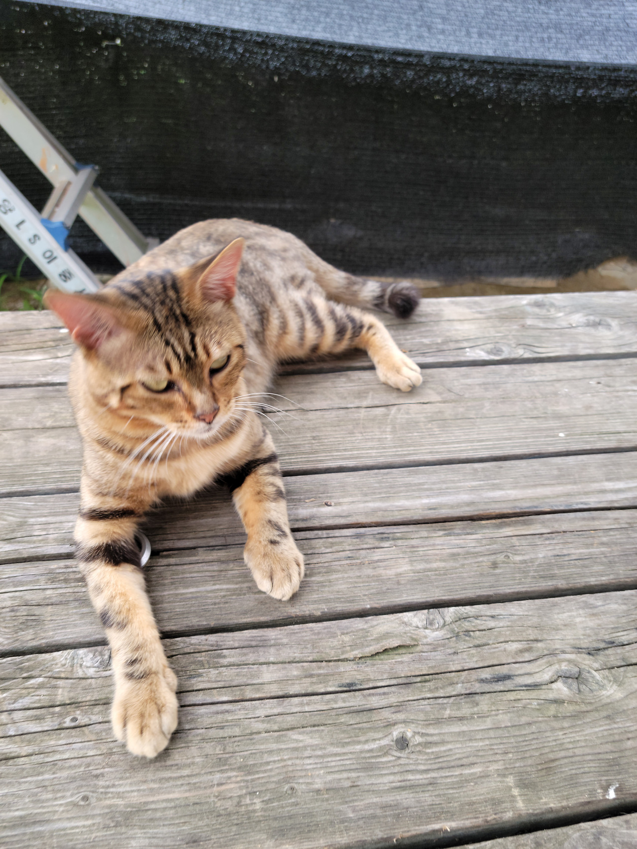 아침엔 나보다 먼저 와서 탁자위서 자릴 잡고 있고 저녁땐 내가 오는 소릴 듣고 어디선가 담을 넘어 스르르 옵니다. 아마도 이 근처 어딘가에 저 얘의 집이 있거나 미리 와서 기다리다 내가 오면 훌쩍 담장을 넘어오는 건지...